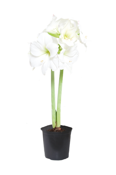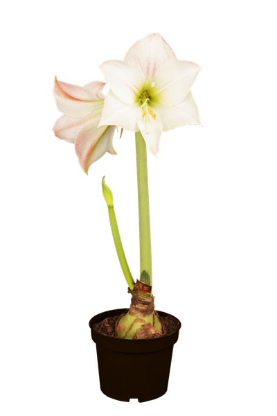 Die Amaryllis (Hippeastrum) in den Trendfarben Weiß und Hellgrün gibt sich erhaben und stolz. Mit ihr können Sie Esstische und Kommoden modern und festlich schmücken.