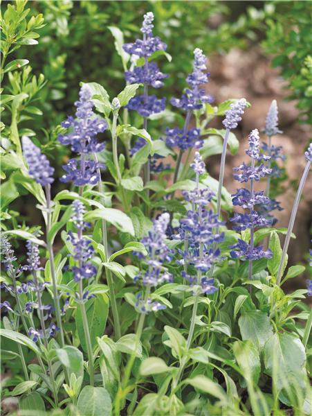 Der nicht winterharte MEHLSALBEI (Salvia farinacea) zeigt aufrechte, samtig blaue Blütenkerzen mit feinem silbrigen Schimmer. Von Juni bis zum ersten Frost bringt er Struktur ins Beet und dient Bienen als Nahrungsquelle. Am besten gedeiht er sonnig in durchlässiger, nährstoffreicher Erde. Gleichmäßige Feuchtigkeit und ein Rückschnitt nach der ersten Blüte fördern eine zweite Blütenphase.