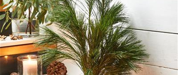 Zu den größten Nadelbaumarten gehört die Seidenkiefer (Pinus strobus), die auch Weymouth-Kiefer genannt wird. Mehrere hundert Jahre alt, erreicht sie eine Höhe von 35 m. Ihre blaugrünen Nadeln sind zart, weich und lang und die Zweige sind deshalb auch sehr dekorativ in einem weihnachtlichen Strauß in der Vase.