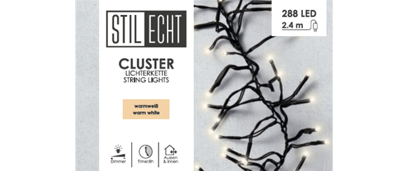 Die Cluster-Lichterkette lässt sich das ganze Jahr über verwenden. Ihren Einsatz findet sie auch bei Feierlichkeiten wie Geburtstage oder Hochzeiten.