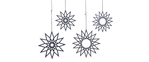 Für eine besondere natürliche Gemütlichkeit sorgen Hänge-Sterne aus Sperrholz. Die filigranen Sterne eignen sich perfekt als Baumschmuck oder weihnachtliche Fensteranhänger und unterstreichen den Trend „Cosy Moments“.