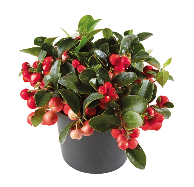 Mit ihren farbenfrohen Beeren fällt die Scheinbeere (Gaultheria procumbens) sofort ins Auge. Je nach Sorte können diese rot, rosa oder weiß sein. Für eine besondere winterliche Bepflanzung sorgt die Scheinbeere mit roten Beeren, die einen schönen Kontrast zu den grünen Blättern bilden. Sie eignet sich sowohl für den Balkonkasten als auch für flache Schalen oder niedrige Töpfe. Im Winter liebt die Pflanze einen sonnigen Standort.