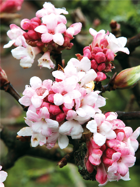 Der Winterschneeball (Viburnum bodnantense 'Dawn') ist ein außergewöhnlicher Blickfang in der kalten Jahreszeit. Schon im November beginnt er, seine rosa Knospen auszubilden, die sich bis in den April hinein zu einer weiß-rosafarbenen Blütenpracht entfalten. Mit seinem intensiven Duft verführt er die Sinne und gehört zu den seltenen Pflanzen, die mitten im Winter Frühlingsgefühle wecken. Am liebsten wächst der Winterschneeball an einem sonnigen bis halbschattigen, windgeschützten Standort in lockerem, nährstoffreichem Boden. Viel Pflege benötigt er nicht: Ein leichter Rückschnitt nach der Blüte hält ihn in Form, und in Trockenphasen hilft zusätzliches Gießen.