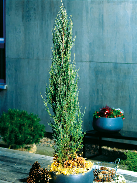 TIPP: Der Kegel-Wacholder eignet sich ideal für Kübelbepflanzungen am Eingang oder auf der Terrasse. Mit Lichterketten und Deko geschmückt, wird er in der Adventszeit zum stilvollen Blickfang.