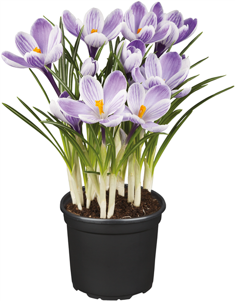 Im Topf präsentiert sich der Krokus (Crocus vernus) als kompakte, farbintensive Pflanze, die den Frühling schon früh ins Haus oder auf den Balkon bringt. Der Frühlings-Krokus, wie er heute bekannt ist, stammt ursprünglich aus den Alpen und Südosteuropa und wurde später vielfach züchterisch veredelt, um kräftigere Farben und größere Blüten zu erzielen. Er bevorzugt einen hellen, kühlen Standort und leicht feuchte, gut durchlässige Erde. Zu hohe Temperaturen verkürzen die Blütezeit. Nach dem Verblühen können die Zwiebeln getrocknet und im Herbst ins Beet gesetzt werden, wo sie im nächsten Jahr erneut austreiben.